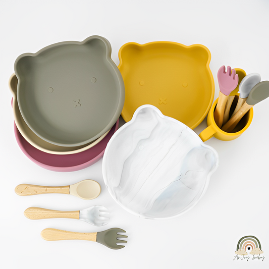 Tigela De Sucção Com Tampa e Colher De Silicone